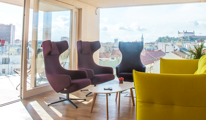 ■ možnosť prenájmu exkluzívnej zasadačky (Skybox) na streche budovy