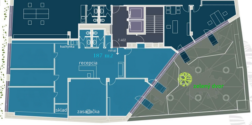 ■ vstupná hala, 5 kancelárií, presklená zasadačka