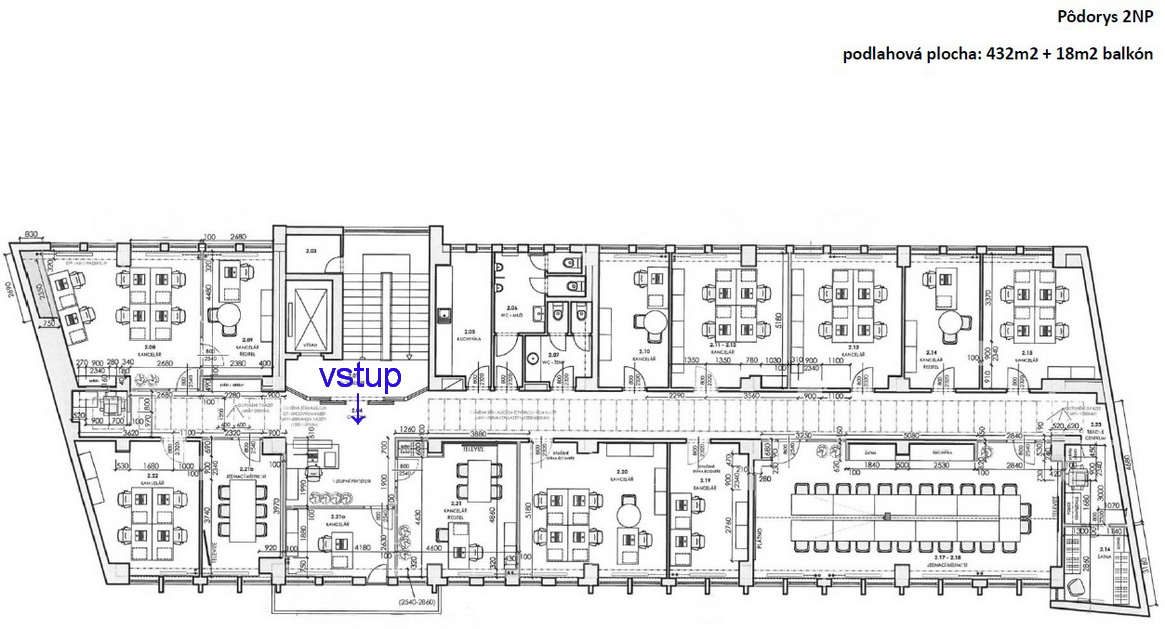■ 2.NP : 432 m2 + 18 m2 balkón