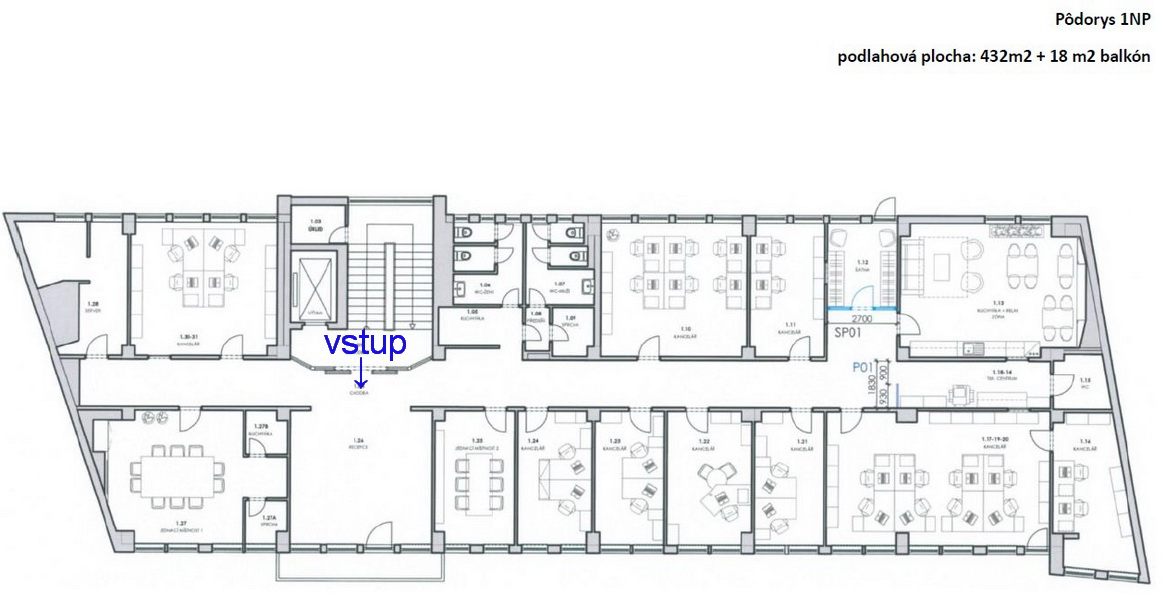 ■ 1.NP : 432 m2 + 18 m2 balkón