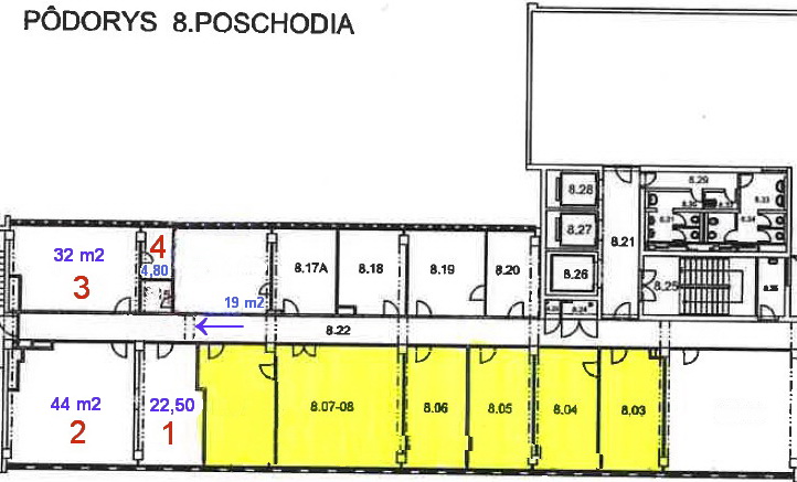 ■ priestor je možné upraviť podľa požiadaviek (počet a veľkosť kancelárií)