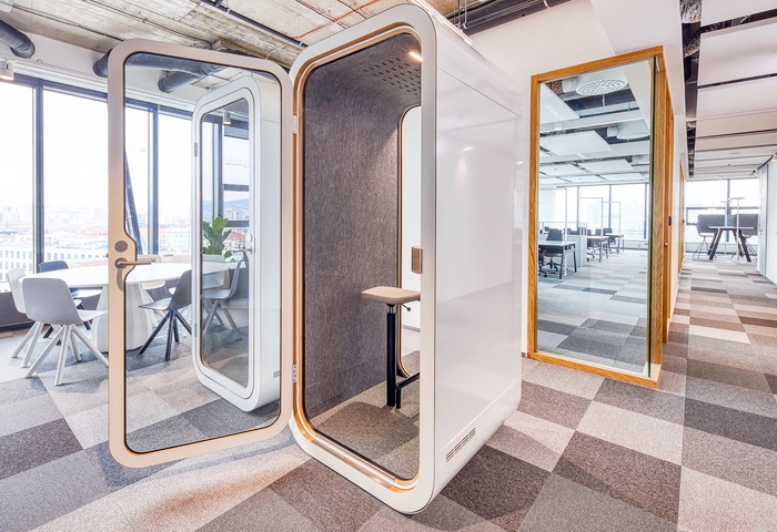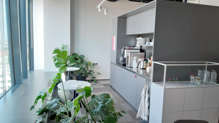 spoločná kuchynka , oddychové zóny, zasadačky, bunky na telefonovanie